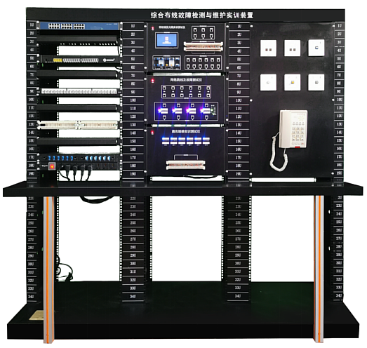 2)實(shí)訓(xùn)臺(tái)可開展布線通訊端接、光纖、銅纜跳線測試及故障檢測、多種永久復(fù)雜鏈路搭建實(shí)訓(xùn),干線子系統(tǒng)實(shí)訓(xùn)和工作區(qū)信息插座裝置安裝等五部分實(shí)訓(xùn)。